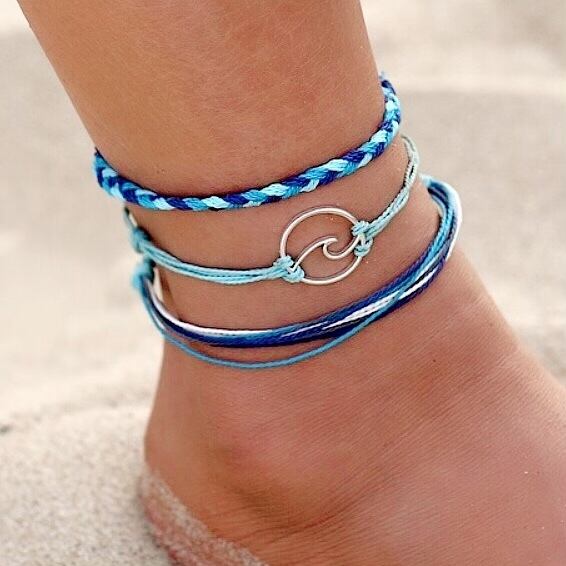 no1738/ユニセックス/波/ウエーブ/マリン/アンクレット/ブレスレット/ミサンガ 3セット