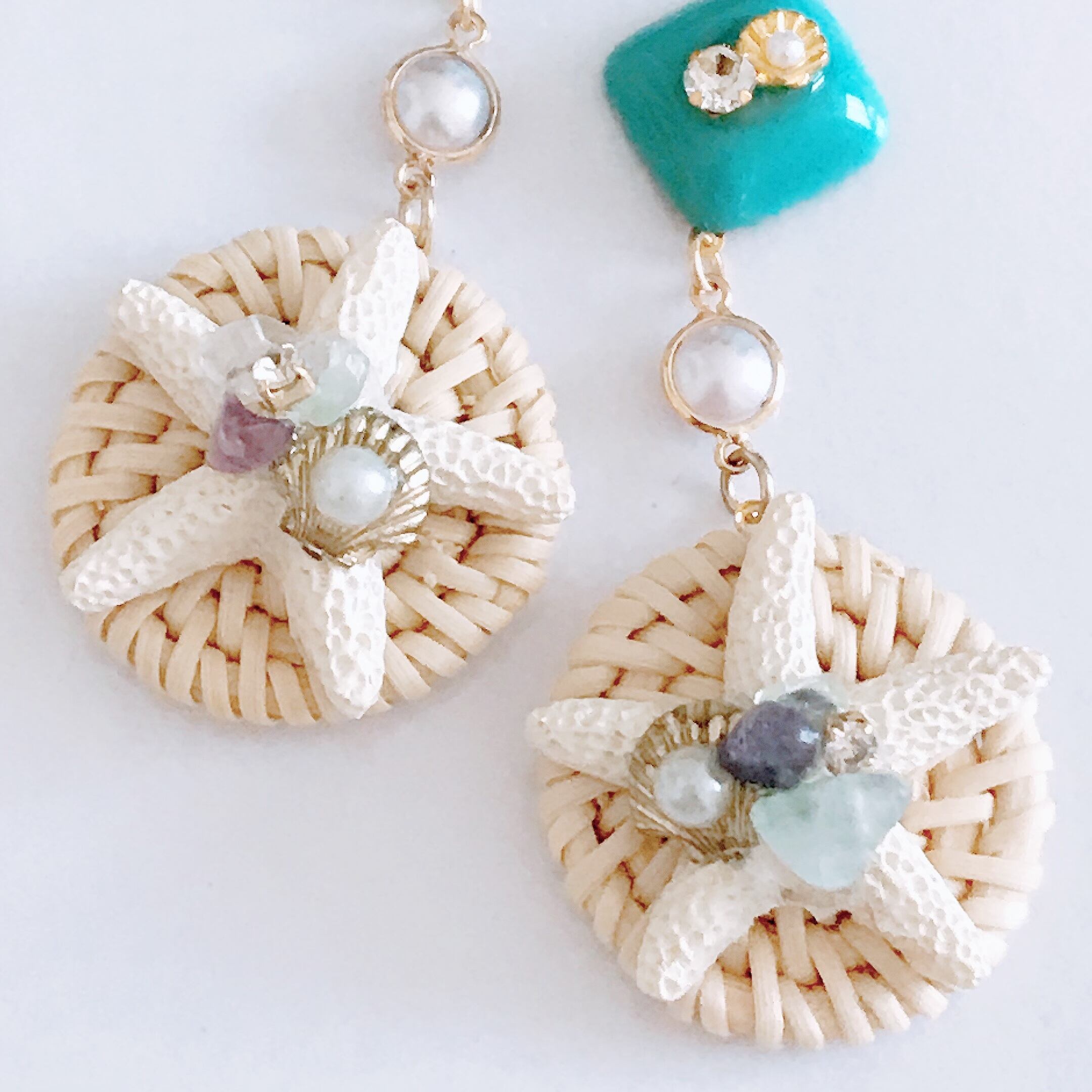 大人気シェルとヒトデ/スターフィッシュを使用したラタンピアスになります♡