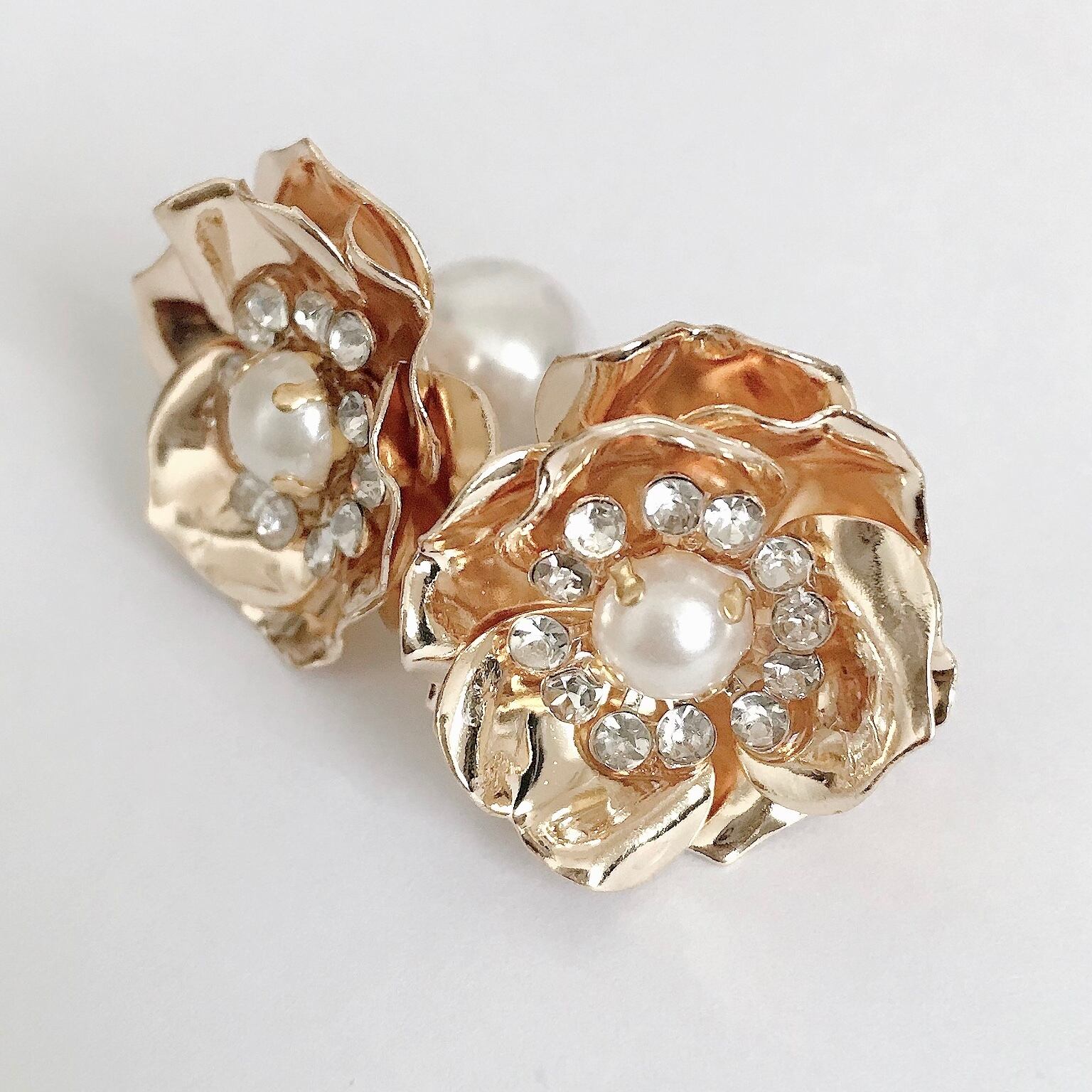 パールキャッチつきフラワーピアス♡