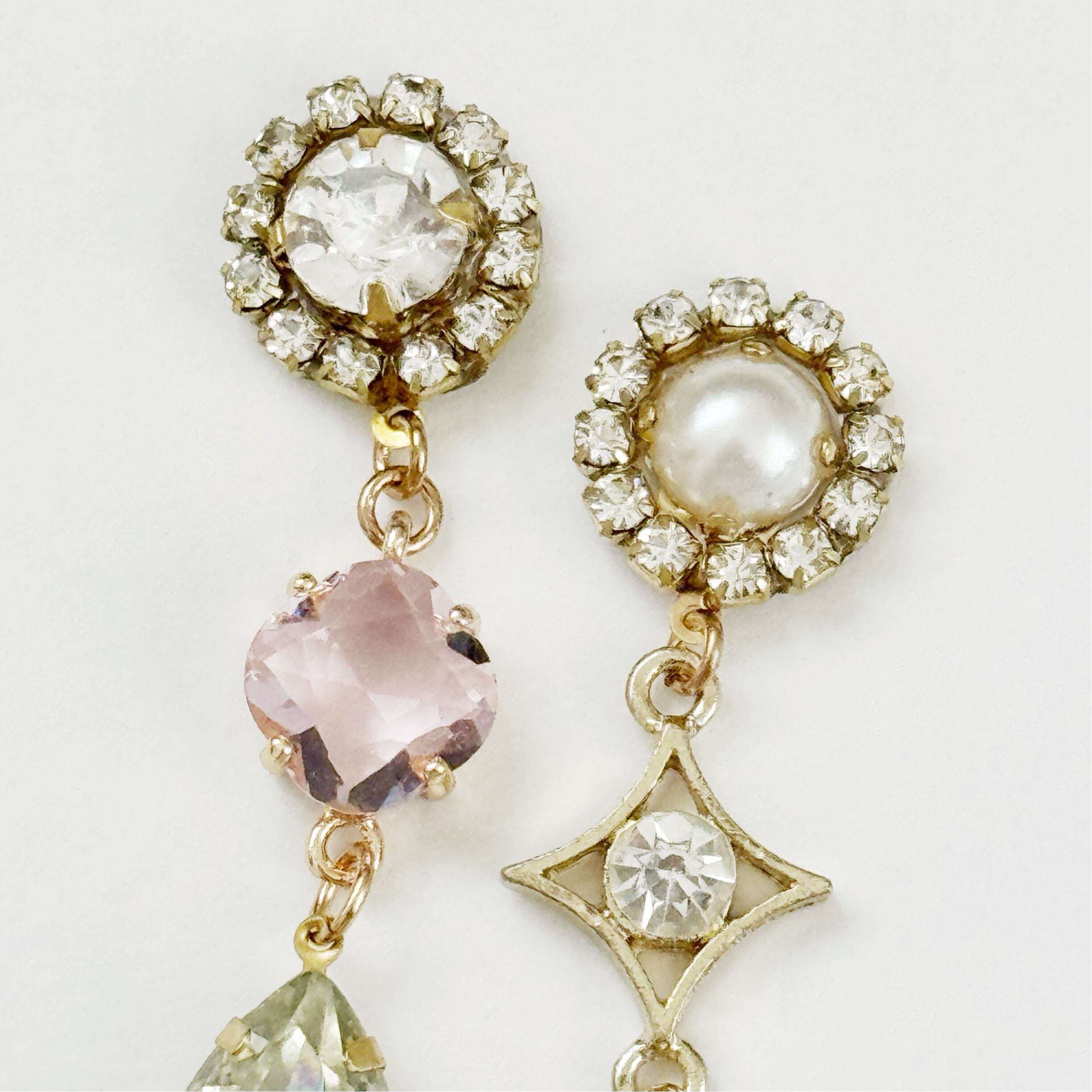 左右デザイン違いのアシメトリーピアスイヤリングになります。